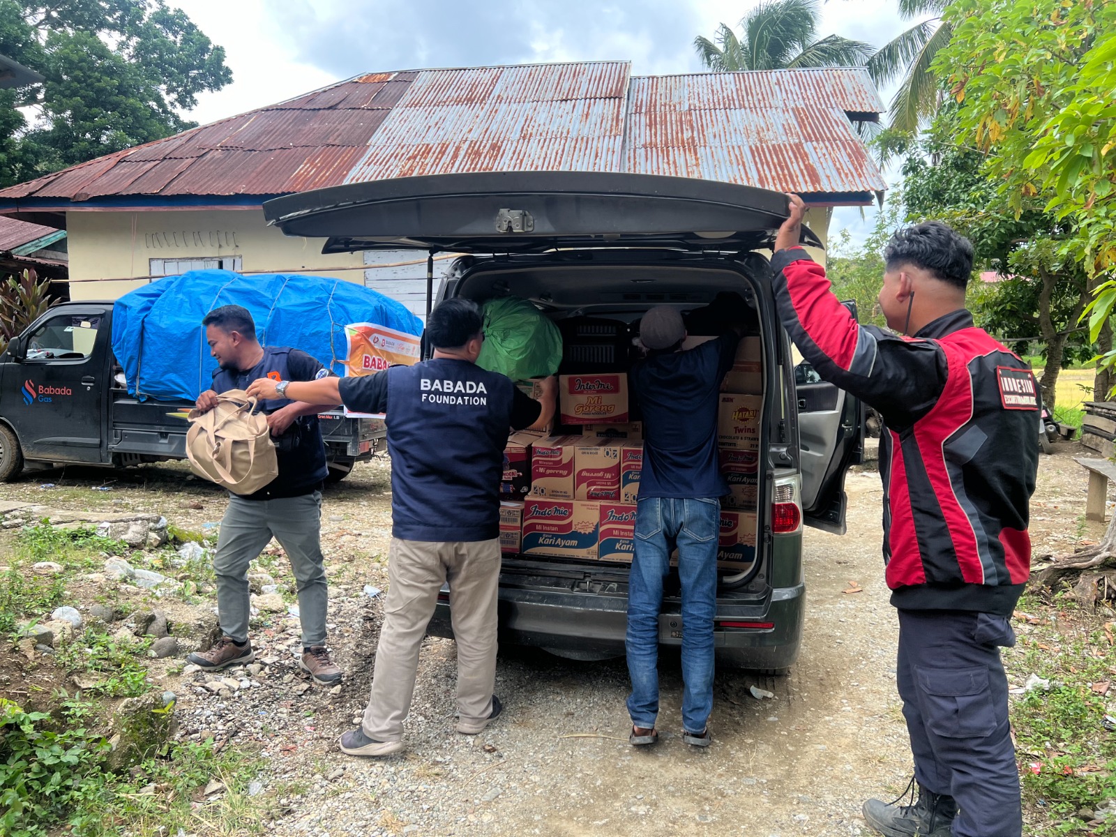 Pengiriman bantuan dilakukan pada Minggu, 7 Desember 2025 pukul 17.00 WIB. Sebelumnya, tim Babada Foundation berangkat dari kota Pekanbaru pada Sabtu, 6 Desember 2025 menggunakan dua mobil yang membawa berbagai kebutuhan pokok. Rombongan memulai perjalanan dari kantor Babada Foundation di Jalan Lintas Timur Km 14, Kecamatan Kulim, Kelurahan Mentangor, Kota Pekanbaru.
